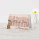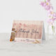 Tack-kort för bröllop eller andra fester, evenemang, tillfällen etc... Designat med ett rustikt lantligt tema. En gammal rostig mjölkburk med en snygg gul blomma vid sidan. Vete och bleka rosa blommor i bakgrunden mot en svag träpanel.
