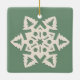 Färsk fotoornament med snöflingor och namn och år i din egen anpassningsbar. På baksidan finns en annan Krafty papercut-snöflake på trendigets dammiga grönt.