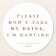 Detta är en rustic modern minimal tematisk bröllop UNDERLÄGG för PAPER med en elegant tidlös design med rolig text "VÄNLIGEN TA INTE MIN DRINK, JAG DANSAR" Redigera all text och alla färger för att göra detta minimala bröllopsunderlägg passa dina evenemang behov och personliga stil. Välj bara "redigera med hjälp av designverktyg" på verktygsfältet :)