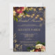 En vacker, rustik, traditionell möhippa/möhippa brunch-inbjudan med vinterblommor av mörk burgundy, vibrant röd och elfenbensgrädde ro, och peonier, strängar av twinkle ljus och ett chic faux guld kalligraphy-skript över en mörk vid midnatt, blå krita. +++++++++++++ inbjudan är även lämpligt för sommarnatt eller höstfall vid land/utomhusbak/gårdshus vid bröllop.