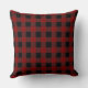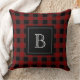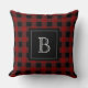 Rustik monogram röd svart Buffalo-rutig rutmönster Kudde