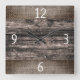 Rustik Mörk Brown Wood and Burlap Farmhouse Fyrkantig Klocka