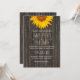 Rustika Inbjudningskort för Bröllop med Mörk Träbakgrund och Solros.