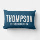 Rustik mörkblå linneväv grafisk familjenamn kudde med anpassningsbar mall för bröllopsår.