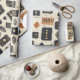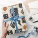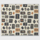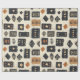 Jordnära geometriskt mönster i presentpapper inspirerat av tribal mudcloth textilier, med handmålade rektanglar, diamanter och trianglar i kol svart och terrakotta på en texturerad beige bakgrund. En varm boho design idealisk för de som älskar rustik dekoration, artister och alla som dras till jordnära geometriska estetiker.