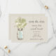 Perfekt för en landsbygdsvigsel eller kanske du bara älskar murbrukslampor! Gammal vintage murbrukslampa hängande på en krok med vilda blommor mot en väderbiten lada. Salvia gröna och elfenbensvita vilda blommor och varmbrun lampa. Om du har några frågor om denna design eller vill ha en färgändring, vänligen maila mig paula@labellarue.com VÄLJ DITT PAPPER: Detta är inställt för att skrivas ut på Basic, men du kan välja en alternativ kartong.