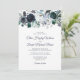 Eleganta navy- och dammiga blå bröllopsinbjudningar med en trendig vit bakgrund som kan ändras till valfri färg, rustika boho blåa akvarellblommor och en modern bröllopsmall.