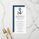 Elegant nautiskt tema bröllopsmeny med ankare och rep målad i akvarell och modern typografi.