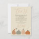 Den här eleganten är ett tack för att du har ett kort med handillustrerade pumpor i mjuka, jordnära tonar av beige, grönt och orange, perfekt för en falltemerad babydusch. Den minimalistiska typografin tillför en aning rustik charm medan det personliga tack-ni-budskapet tillför en uppriktig känsla. Idealisk för att du uttrycker tacksamhet till dina gäster efter en mysigt barndusch på hösten.