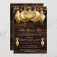 Ringa in det nya året med sofistikering och glans med denna guldfärgade inbjudan till nyårsafton. Med glänsande guldfärgade dekorationer och skimrande konfettiaccent mot en rik mörk trädgård bakgrund kombinerar denna design tidlös elegans med festlig värme.
