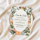 Ge dina bröllopsinbjudningar en frisk och färgrik touch med detta trendiga orangefärgade blommiga Save the Date-kort. Med ömtåliga vita blommor och akvarell-citrusaccent runt en mjuk, elfenbensfärgad oval ram är det det perfekta valet för rustika, medelhavsinspirerade, sommar- eller bohemiska bröllop. Helt anpassningsbart med era namn, datum och plats för att skapa en souvenir som era gäster kommer att älska.