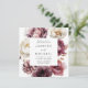 Den här blommigtens bröllopsinbjudan fångar den romantiska fallsäsongens kärna med varma nyanser av marsala, burgundi, elfenben, kräm, brun och rost orange. Den fängslande designen blandar på ett felaktigt sätt kalligrafens skönhet med en kvadrat ram av höstblommor och ömtålig löv, som har kommit till liv genom vattenfärgernas artiker och skapar en verkligt mesmeriserande keepé för din speciella dag. Anpassa elegantens höstbröllopsinbjudan med uppgifter om namn och bröllop. Baksidan av fallbröllopsinbjudan visningar ditt fullt-utfallsfoto med fyrkantiga förlovningar. Den här designen koordinerar med vår Rustic Autumn Blommigt bröllop-samling.