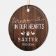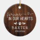 Rustic pet-prydnadsföremål tryckt med ett brunträsutseende. För alltid i våra hjärtan skrivna i vitt, med ett sött hjärta. Lägg till husets namn och levnadsår.