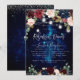 Rustik Övningsmiddag Murade Glas Ljussträngar. Med midnight blue himmel, akvarell blommor boho burgunder och rosor i blush och marinblå. Accenterad med elegant och modern falsk guld (med silverfilter) handskriven bröllopsinbjudan. DIY bakgrundsfärg.