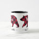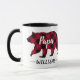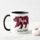 Det här roliga kaffet mugg har en röd och svart buffelbjörn på vit bakgrund. björnen lyder "Pappa" på den i vit typografi med en namn nedan för att du ska kunna anpassa dig i svart. Designad av världsberömd konstnär Tim Coffey.
