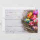 Denna eleganta semesterdesign har färgglada målade påskägg i en fågelbo på rustika vita träskivor. Anpassa genom att redigera texten i textrutorna för dina anpassade påskbrunch- eller lunchinbjudningar.