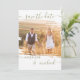 Rustik penseldragsincitament bröllop spara datum med ett stort foto på framsidan, som du ändrar och ett på baksidan. Ett typografiskt skript för söt för en minimal och enkel modern känsla. Den här har ett boho-par i fält, men ett foto kommer att se underbar ut! Om fotot inte passar ordentligt kan du alltid skörd det INNAN du överför det till Zazzle.