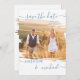 Rustik penseldragsincitament bröllop spara datum med ett stort foto på framsidan, som du ändrar och ett på baksidan. Ett typografiskt skript för söt för en minimal och enkel modern känsla. Den här har ett boho-par i fält, men ett foto kommer att se underbar ut! Om fotot inte passar ordentligt kan du alltid skörd det INNAN du överför det till Zazzle.