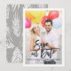 Ett snyggt-lodrät sparar det platta datumkortet som innehåller en pensel för modern kalligrafi med lövs mönster. Anpassa det här kortet genom att lägga till ett eget foto och information. Det finns en platta kortversion tillgänglig.