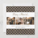 Anpassningsbar Rustic plaid-merry och gift julkort med en snösvart och khaki buffalo-bakgrund med 3 foton i mitten och en vacker, handskriven titel ovan. Anpassa enkelt det här roliga julkortet med bilder, text och din familj namn.