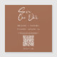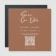 Mindre krångligt, ingen post saknas när du inbjudan dina gäster online med en QR-kod som skickar dem direkt till bröllop webbplats för ytterligare information. Utformningen har ett minimalistiskt, rustiskt terracotta färg-kreativ med ett modernt kalligrafi i mycket elegant Spara Vårt Date-skript. Följ enkelt anvisningarna för hur du infogar webbadressen till bröllop i exemplet ovan. Det är allt som står i det.