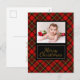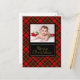 En mysig röd randig bakgrund sätter scenen för en lekfull julhälsning i country-stil för familj och vänner. Ändra och anpassa detta kort med ett fotografi av din familj med en varm röd, grön och svart rutig bakgrund och din hälsning på baksidan.