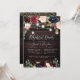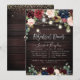 Rustik Reperitionsmiddag Murbruksljuslyktor. Med mörka rustika träpaneler, akvarellblommor i boho vinröd och rosafärgad samt marinblå rosor. Accenterad med elegant och modern falsk guld (med silverfilter) handskriven bröllopsinbjudan. DIY bakgrundsfärg.