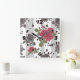 Rustik retro grått vit strimlad blomma röd ros fyrkantig klocka
