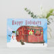 Rustik Retro Husvagn Resvagn med Snömannen Julkort