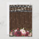 Landsbyhoch bröllopsinbjudningar med en rustik träfatbur bakgrund, slingrande ljus, en röd, vinröd och gammelrosa akvarell blomsterdekoration och en vacker bröllopsmall.