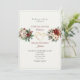 Fira din kärlek med denna romantiska vinterbröllopsinbjudan med festliga röda och elfenbensvita blommor, gröna tallbarrsaccent och ett detaljerat gyllene rep-hjärta. Den varma elfenbensvita bakgrunden och den säsongsbetonade färgpaletten ger mysig charm och rustik elegans – perfekt för en julinspirerad fest.