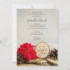 Bjud in gästerna att hålla festen igång på morgonen efter December bröllopsceremonin med den charmiga Rustic Red Poinsettia Woodland Winter Post Wedding Brunch Inbjudan. Denna utomhus tema anpassad för skog eller trädmiljö Efter Bröllops Frukost eller Lunchninbjudan har en pittoresk digitalt förbättrad blomfotografi av en röd julstjärna blomma, två bruna kottar, vit brudslöja och naturliga trä skivor med ordet KÄRLEK bränt på det med en jute och vit satin bakgrund.