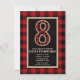 Rustik Röd Svart Buffalo Randig 8-års Födelsedagsf Inbjudningar