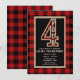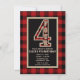Rustik röd svart Buffalo-rutig 4-års födelsedagsfest inbjudan.
