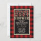 Rustika röd-svarta Buffalo-rutiga förlovningsdusch-inbjudningar.