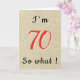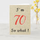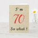 Rustik rolig inspirerande Citat 70-årsdagskort. Designen kommer med ett roligt citat Jag är 70 så vad. Ett inspirerande gratulationskort för en man eller en kvinna som firar 70-årsdagen och har en humor. Du kan ändra åldern.