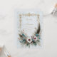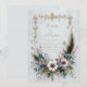 Skapa en mjuk och romantisk atmosfär med denna exklusivt detaljerade inbjudningsdesign. Konsten har en graciös nedre kant sammansatt av stora, bleka rosafärgade cosmosblommor och eucalyptusblad, flankerad av svepande fjädrar i neutrala toner. Överst på inbjudan kröns en delikat, antkliknande förgylld utsmyckning som ger en touch av kunglighet till den rustika kompositionen. Den rena, off-vita bakgrunden låter de intrikata botaniska och fjäderdetaljerna sticka ut, vilket gör den till en perfekt blandning av modern sofistikering och vintage charm. Denna mjuka och luftiga design är ett felfritt val för en vårfältsceremoni eller en avkopplad landsbygdsreception. Du kanske också väljer denna vackra estetik för en sofistikerad bröllopsfrukost, en söt 16-års födelsedagsfest eller en könsneutral namngivningsceremoni för