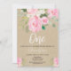 Rustik rosa blommigt 1:a födelsedag inbjudningar