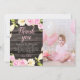 Rustik och elegant botanisk födelsedagsfest tackkort! Det finns en rosa och krämfärgad blomsterkrans (kamelia och magnolia) målad med akvarell på en träbakgrund. Standardmeddelandet finns redan där, men det är redigerbart. Anpassa denna produkt genom att lägga till ditt barns namn längst ned och din egen foto.