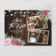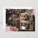 Eleganta rustika rosa blommiga bröllop spara datum foto postkort ideal för ett romantiskt rosa rustikt bröllop. Detta spara datum postkort har en bakgrund av trä från lada dekorerad med rosa rosor, vit blomster spets och strängljus. Matchande artiklar finns tillgängliga.