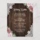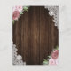 Ge dina gäster viktig information med detta rustika rosa blomsterbröllops införandekort med rosa och röda blommor på en lada träbakgrund prydd med vit blomster slinga.