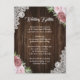 Ge dina gäster viktig information med detta rustika bröllops kuvertkort med rosa blommor på en lada träbakgrund prydd med vit blomster slingor.