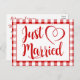 Rustik Rött Gingham Rutor Bröllop Nygifta Meddelande Vykort