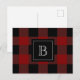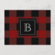 Rustik rutmönstrad skogshuggarmonogram initial röd vykort