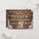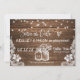 Denna design har en rustik träbakgrund med hängande ljusslingor, vacker spets och vintage murbrukskrukor med blommor. Anpassa denna för alla tillfällen, men bra för en save the date för ett kommande countrybröllop!