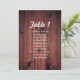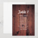 Rustik sittplatskarta för bröllop. Trä bordstablea Inbjudningar