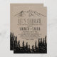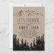 Denna rustika skogiga bergslätt-låt-oss-fira-inbjudan är perfekt för en skogsbröllopsfest. Den naturinspirerade designen har silhuetten av en tallskog och berg på falskt kraftpapper. Denna inbjudan är perfekt för en förlovningsfest, möhippa, eller någon annan tillställning eller fest.