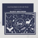 Inbjudan till skogsbarn Baby Shower för pojkar med söta skogselement och en bladkrans i mitten för texten "Det är en pojke!" på en marinblå bakgrund. All text kan ändras för att passa dina behov.