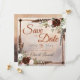 En perfekt komplettering till ditt Rustic Woodland Feathers och Floral Bloom Collection bröllopstema, denna "save the date" vykort har en träram omgiven av en samling vita, hickory och burgunderfärgade blommor, skogsblad och en uppsättning rustika fjädrar på en beige, kastanjebrun, taupe och umber handmålad duk. Personalisera enkelt innehållet med era namn och datum. Baksidan visar era initialer och all information ni vill lägga till, som er webbplats. Om ni ber era familjer och vänner att spara ett av de viktigaste datumen i era liv, varför inte ta det extra steget och fråga dem med stil?