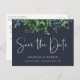 Rustik skogsflora marinblå Spara datum Meddelande Vykort